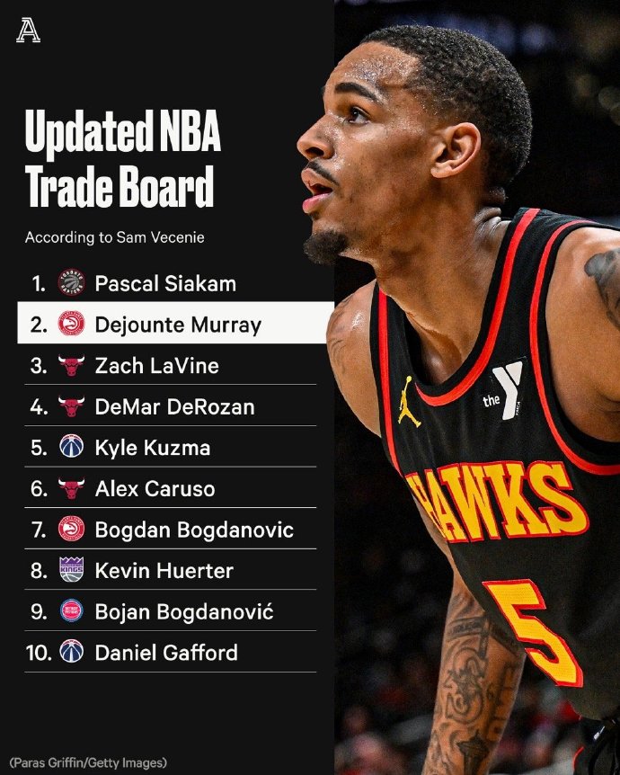 TA记者列交易市场十条大鱼:西卡领衔 穆雷&拉文&德罗赞在列