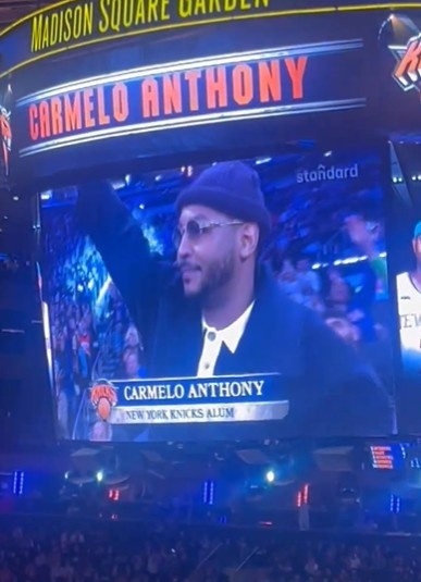 1月18日讯 今日NBA常规赛,尼克斯主场迎战火箭。曾为尼克斯和火箭均效力过的NBA名宿安东尼来到现场看球,现场球迷爆发热烈欢呼。