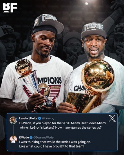 网友:韦德,如果你2020年还为热火效力,那么热火会赢詹姆斯的湖人吗?系列赛会打几场?
