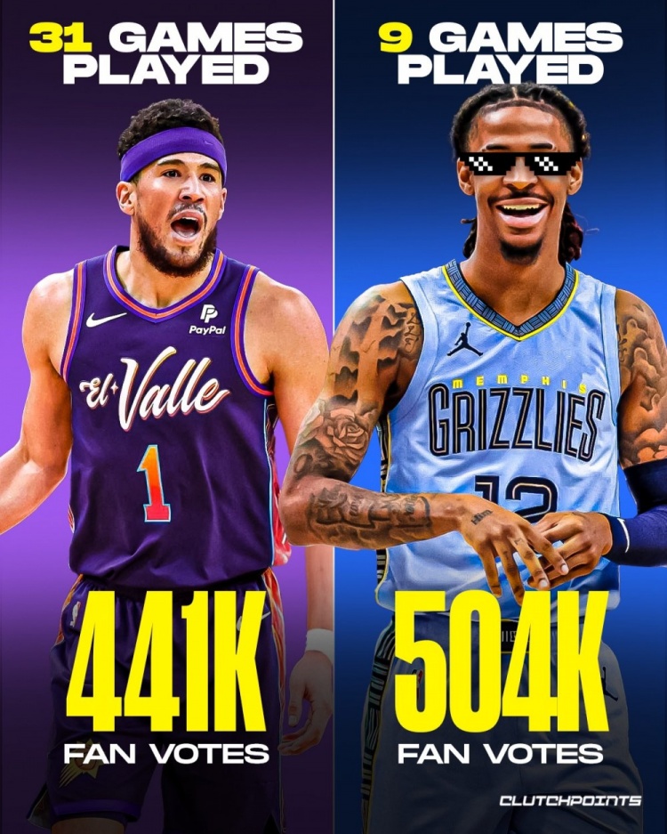 纯拼人气!莫兰特仅打9场&赛季报销得票西部后场第8 布克第9