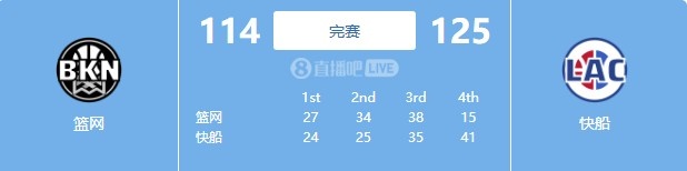 1月22日讯 NBA常规赛,快船125-114击败篮网。