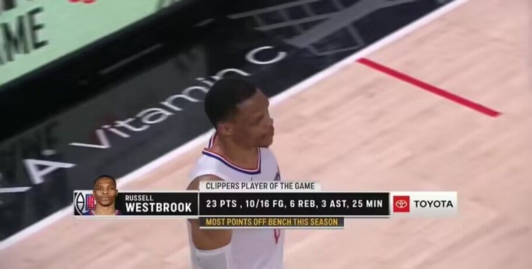 威少砍23分创其本赛季替补得分新高 此前最高为15分!