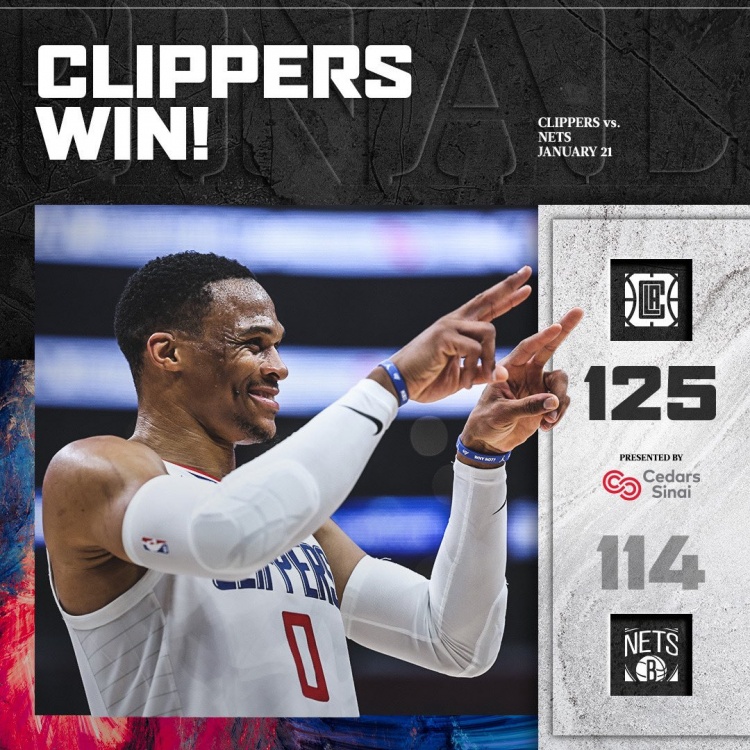 实至名归!快船官方赛后赢球海报以威少做封面