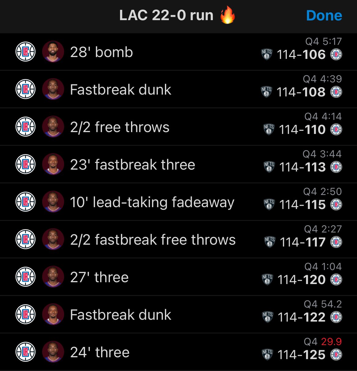 开局篮网就16-0领先,而快船则是在末节最后时刻一波22-0直接收比赛完成大逆转!