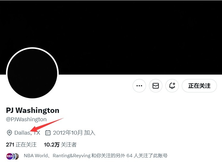 黄蜂前锋PJ-华盛顿将推特个人资料清空 并将定位改为了达拉斯