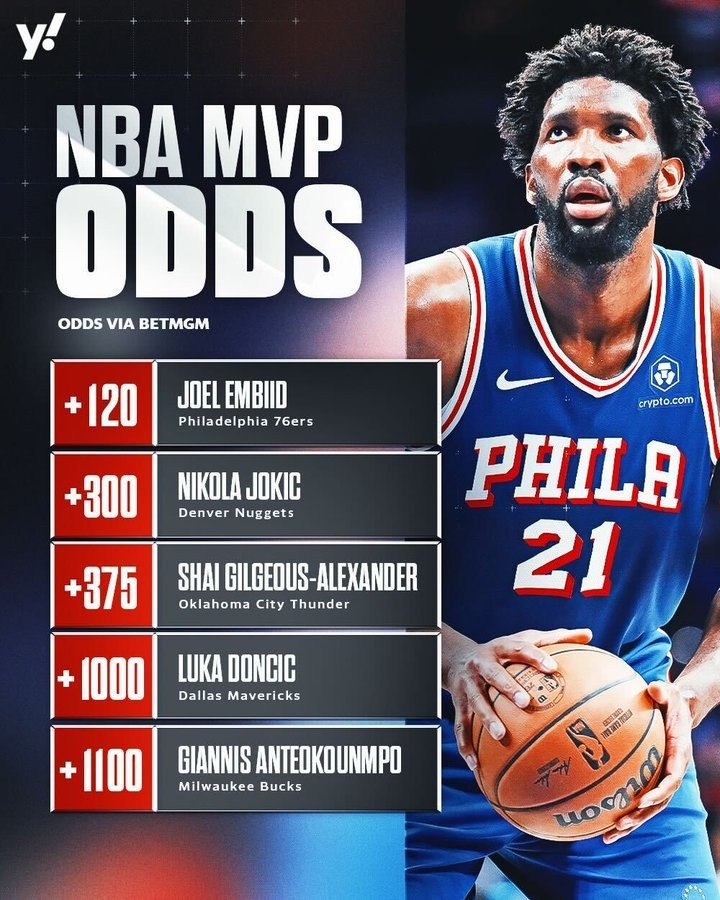 MVP赔率更新:恩比德+120大幅领跑 约基奇亚历山大分列二三位