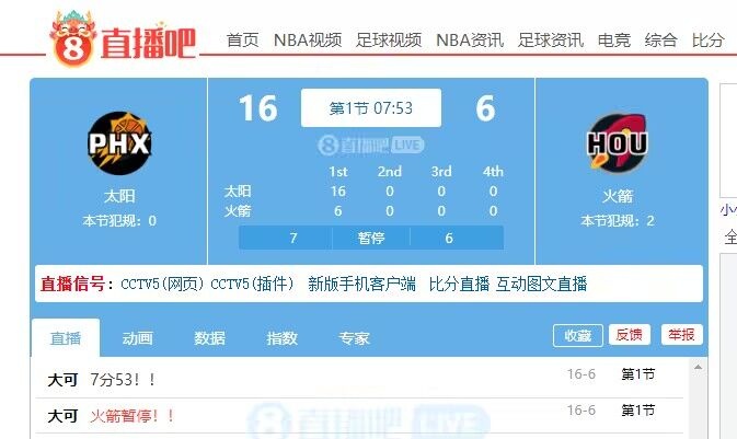 2月24日讯 NBA常规赛,太阳客场挑战火箭。一开场,太阳反客为主率先发力,4分钟的时间内外开花打出16-6的攻击波打停火箭,布克独得7分。