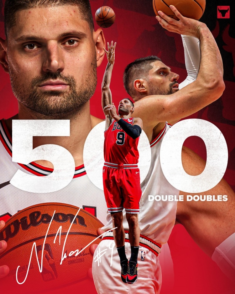里程碑!武切维奇三节砍22分12板 拿下生涯第500次两双