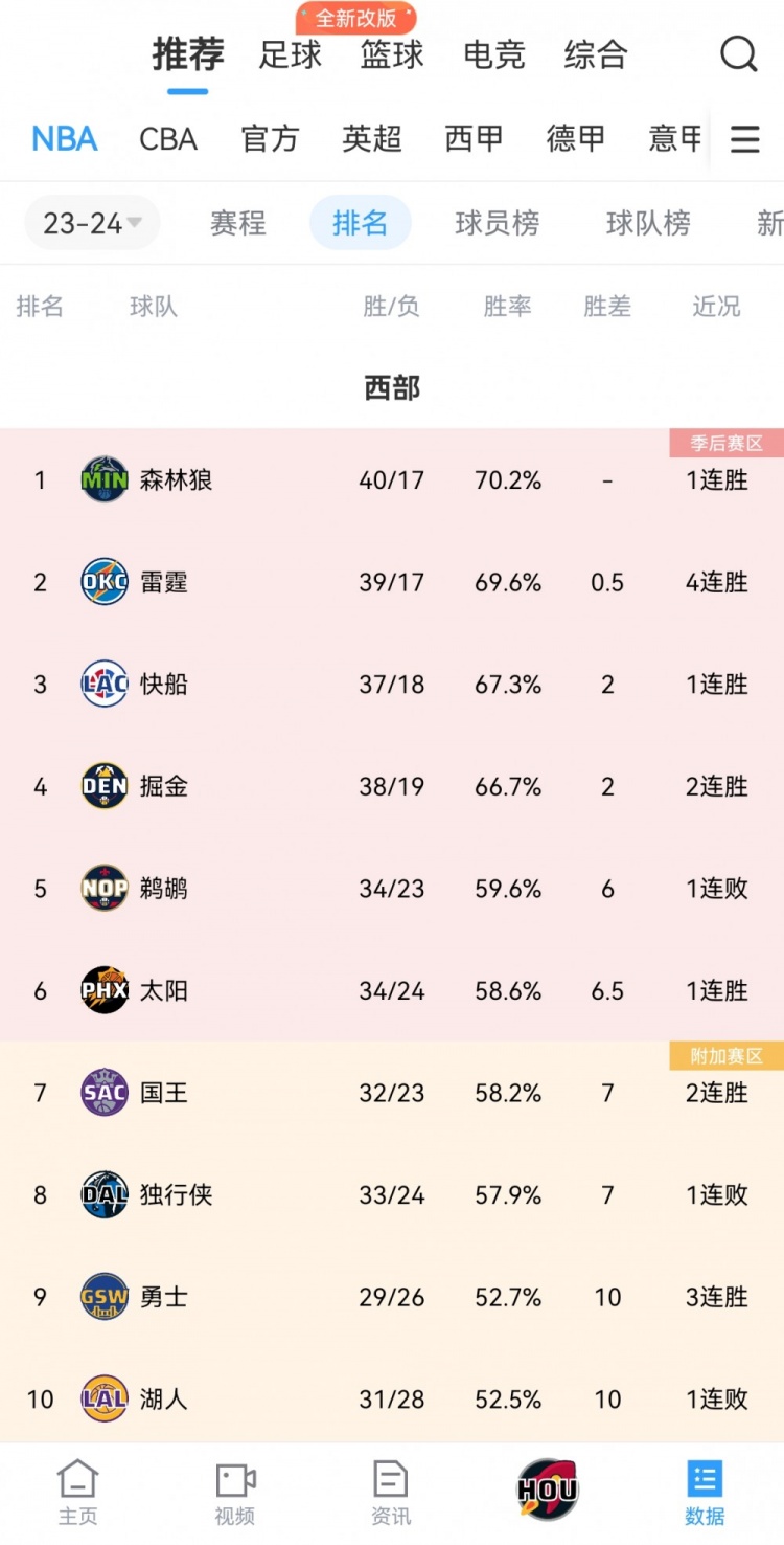 本场输球后,独行侠7连胜被终结,战绩为33胜24负,排名下滑至西部第八。