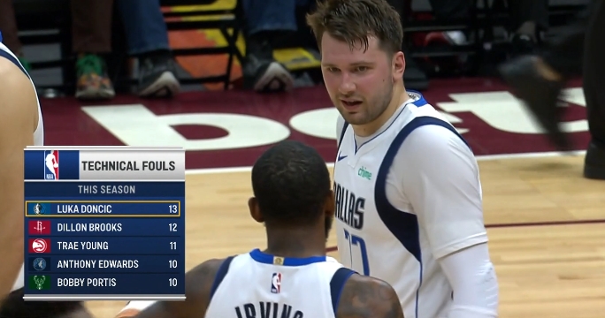 东契奇吃到本赛季第13次技犯超越狄龙独占第一 距离禁赛还差3次