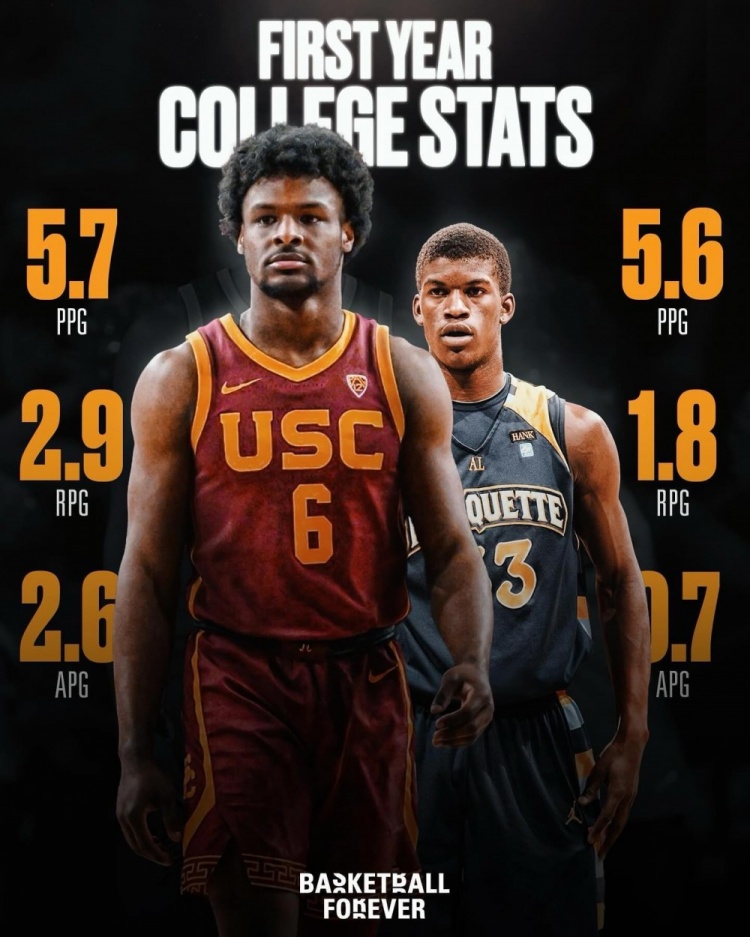 布朗尼本赛季(大一)场均5.7分2.9篮板2.6助攻;巴特勒(13年前)大一赛季场均5.6分1.8篮板0.7助攻。巴特勒在2011年首轮第30顺位被选中