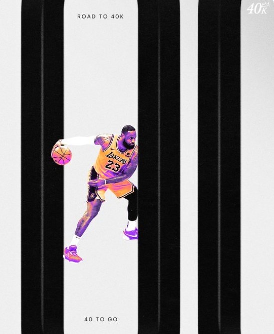 湖人官推晒詹姆斯即将4万分海报:还剩40分了!