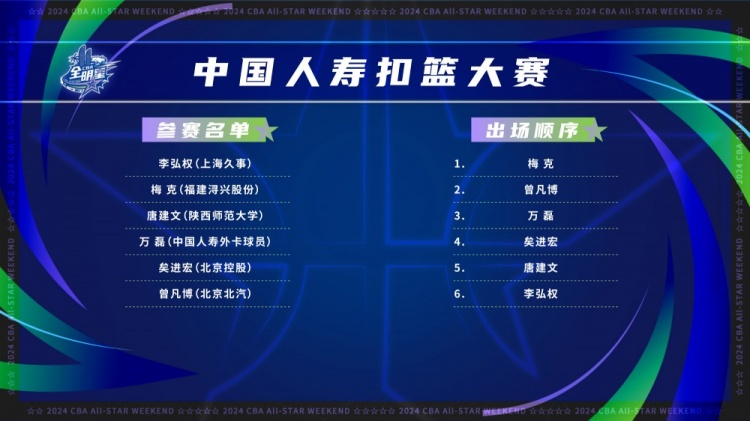 出场顺序都在这了!技巧挑战赛&三分大赛&扣篮大赛抽签结果一览