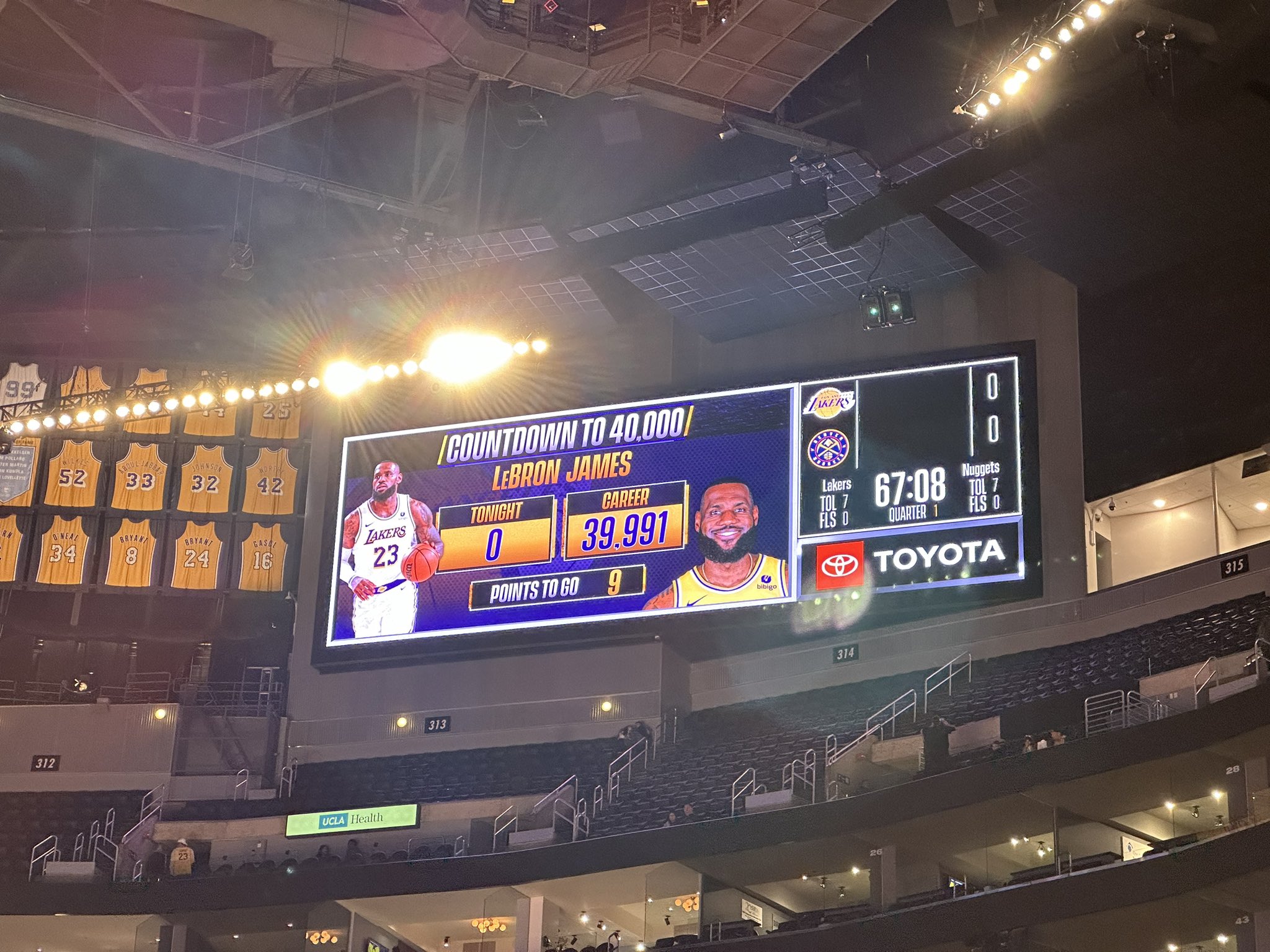 万众瞩目!湖人今日主场有一块大屏幕专门记录詹姆斯本场得分