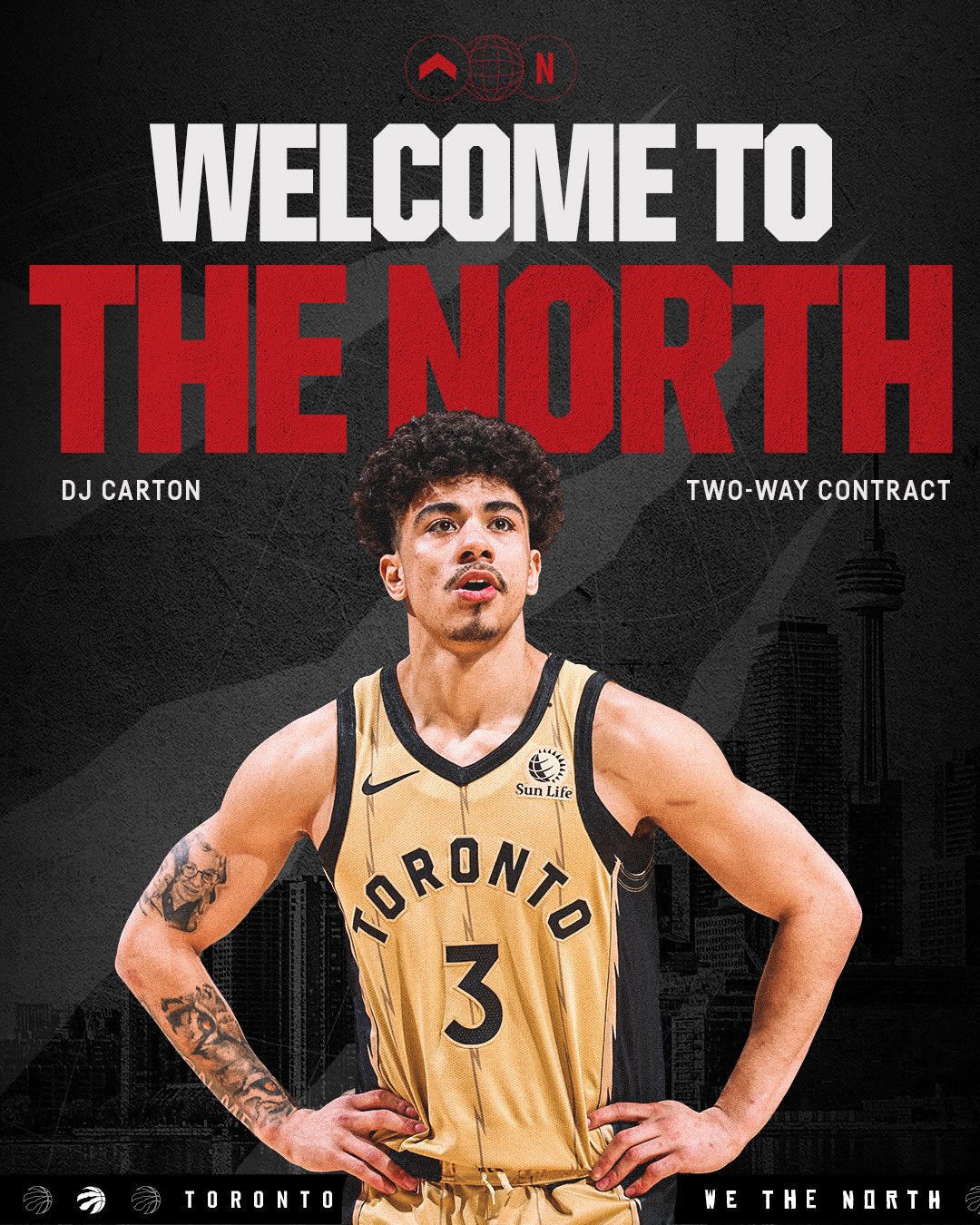 猛龙官方:球队与后卫DJ-卡顿签下一份双向合同