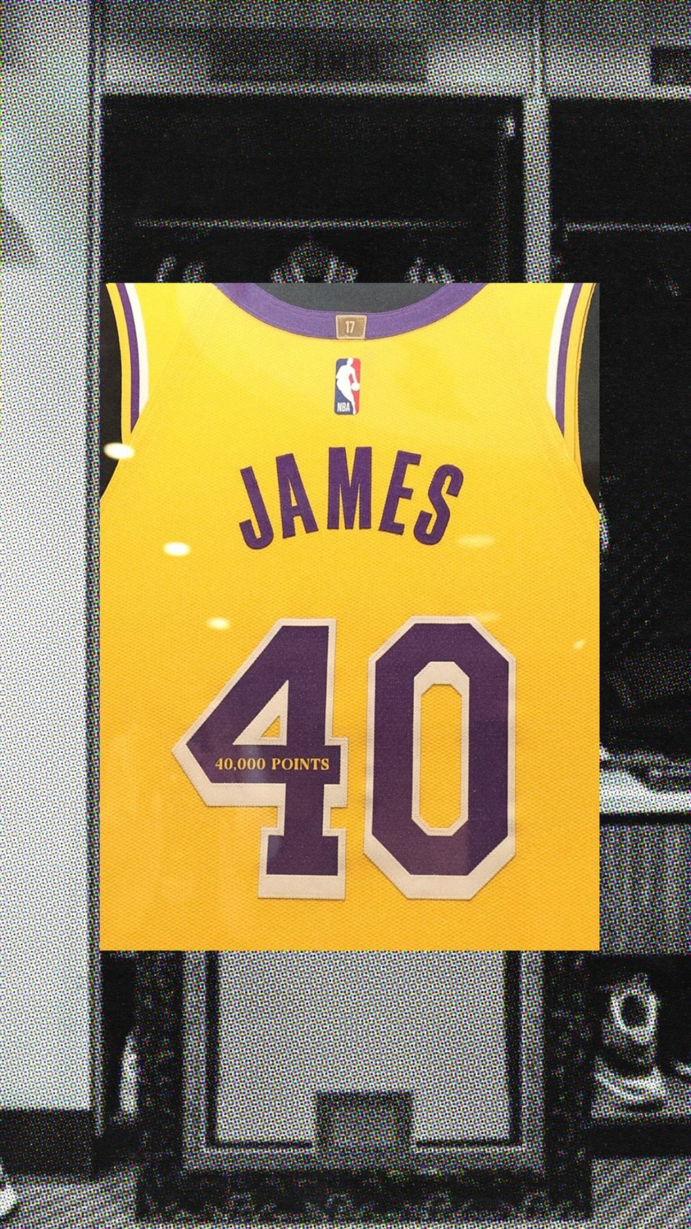 随后,湖人官方晒出了球队为詹姆斯准备的贺礼——一件已精心装裱好的40号球衣。