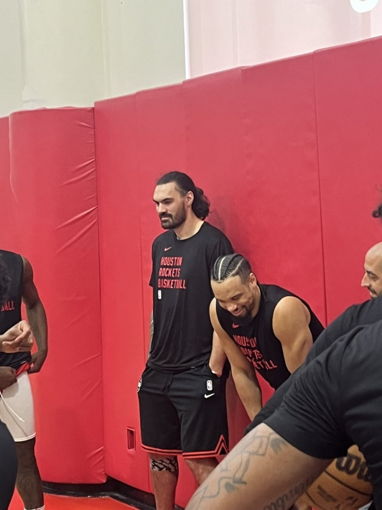 火箭球员小贾巴里-史密斯训练后接受媒体采访时谈到了亚当斯,他表示:“我们上赛季和他交手了几次,你能看出他是如何与队友沟通的,这是他和我们在一起的第一天,但我们感觉他似乎一直就在这里。”