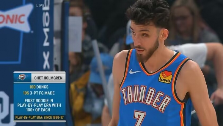 又一纪录!切特本赛季至少进100三分且100扣篮 近28年新秀首人