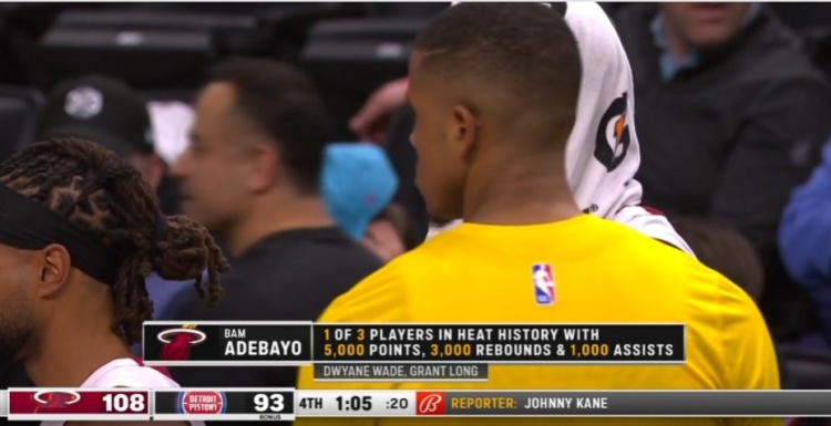据统计,阿德巴约成为了热火队史第三位得到至少5000分3000篮板1000助攻的球员,前两位是韦德和格兰特-朗。