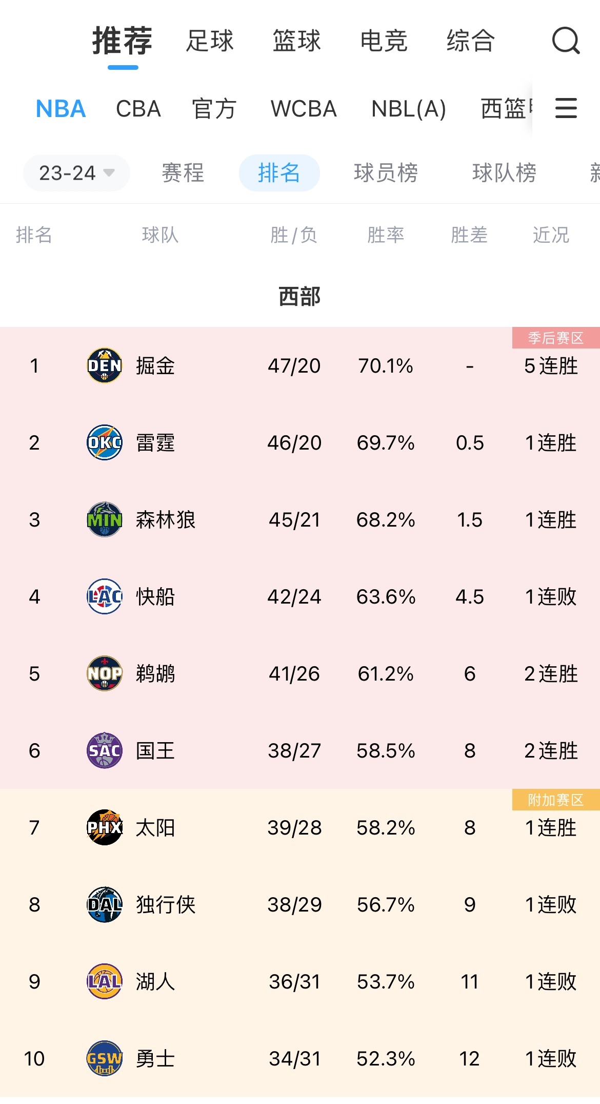 这样,鹈鹕与快船的胜场差只剩1.5了。
