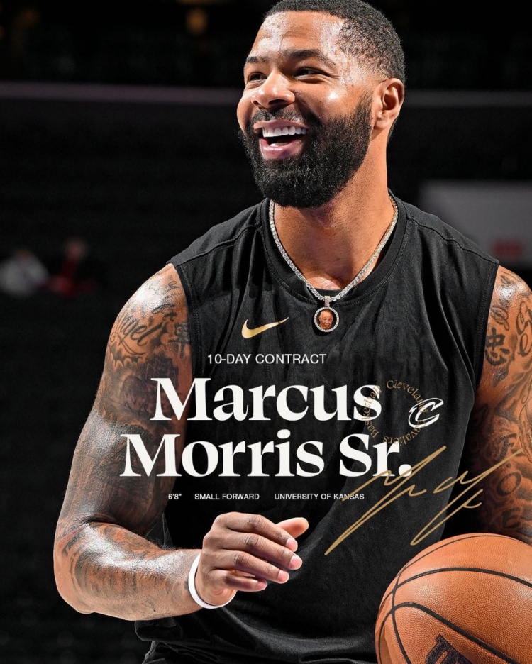 骑士官方:球队与马库斯-莫里斯签下10天合同 后者将披24号球衣