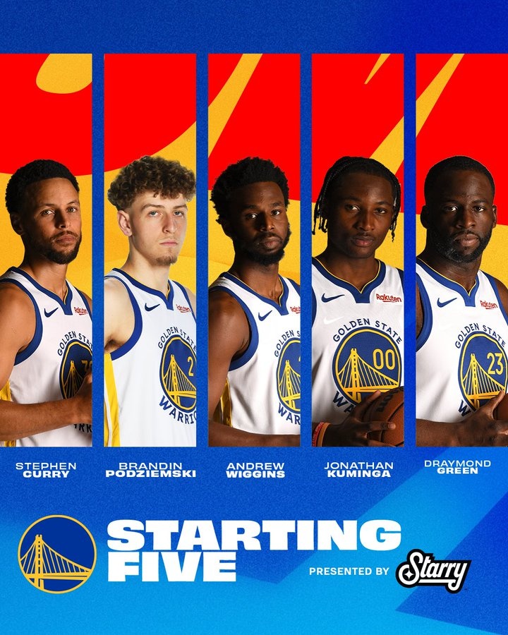 勇士首发出炉:库里、波杰姆斯基、追梦、维金斯、库明加