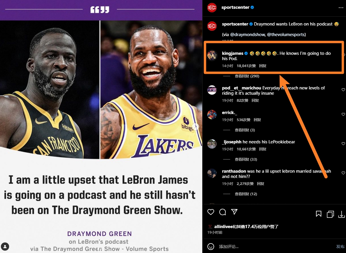 追梦不满LBJ不来做客!老詹回复:他知道我要对他的播客下手了