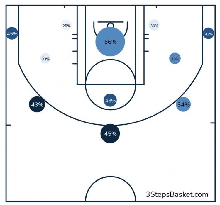 单赛季三分队史第一!拉塞尔三分线上仅右侧弧顶命中率低于42%