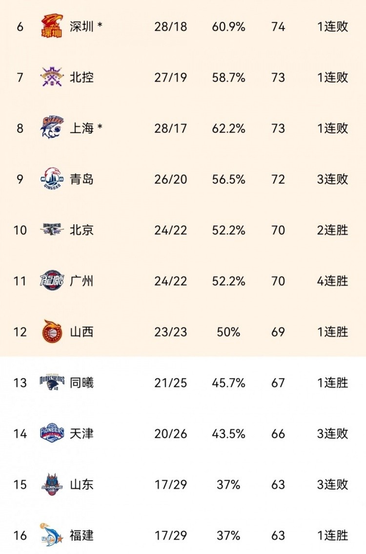 同曦目前战绩为21胜25负,而目前排在联赛第12位的山西队战绩为23胜23负,同曦积分落后2分。