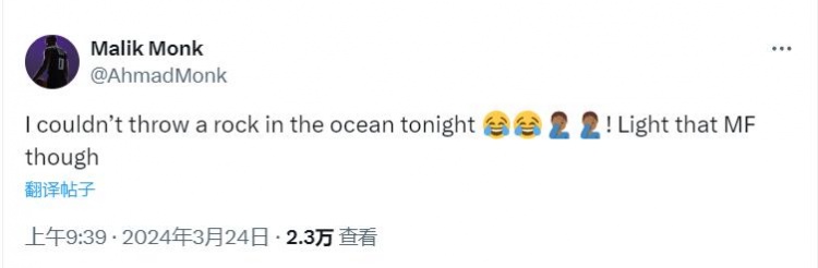 蒙克谈自己糟糕投篮表现:今晚我连把石子扔进大海里都做不到