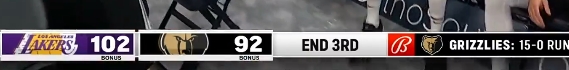 这什么球队?湖人第三节末被灰熊打出15-0 25分领先优势只剩10分