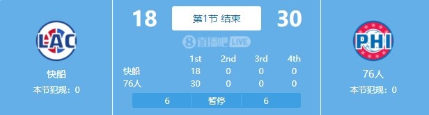 3月28日讯 NBA常规赛,快船客场挑战76人。首节战罢,快船18-30落后对手12分。莱昂纳德4中0、乔治3中1、哈登3中1。