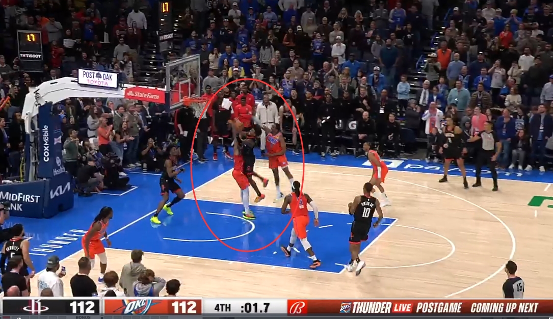 末节8.9秒,雷霆109-111火箭,杰伦威上篮被狄龙犯规