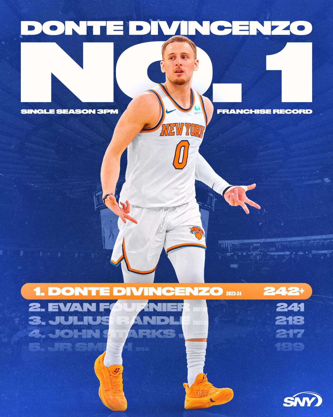 截至发稿时,迪文岑佐投进3记三分,本赛季三分命中数来到242记,超越富尼耶(241记)创造尼克斯队史纪录。