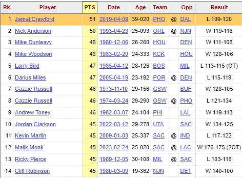 弗林25中18爆砍50分 NBA替补历史第二高!