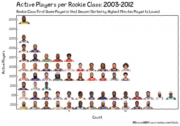 03-12届现役球员一览:詹炮为03与05届独苗 08届以前球员仅剩9人