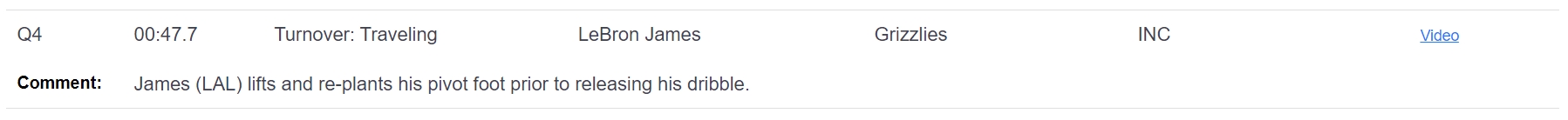 04月14日讯 NBA官方出具了昨天湖人123-120灰熊的裁判报告,报告显示,比赛最后2分钟出现3次漏判,均是湖人获利。1分42.2秒,詹姆斯更换了中轴脚,这是一次走步,裁判