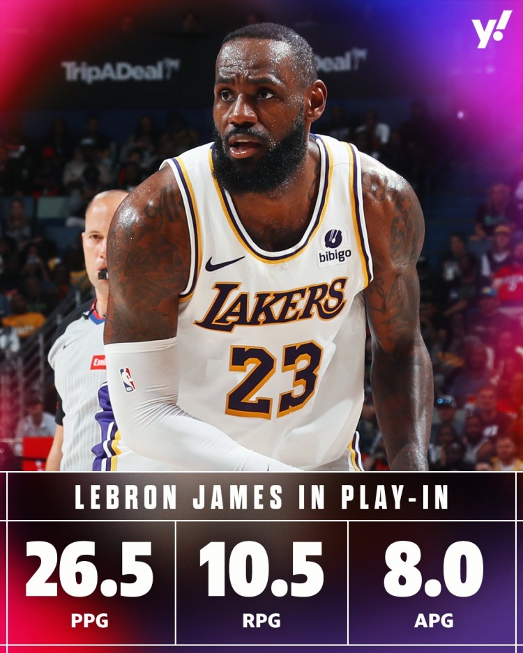 詹姆斯生涯此前共参加过2场附加赛,均取胜。他场均得到26.5分10.5篮板8助攻。
