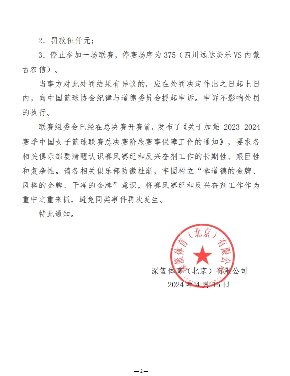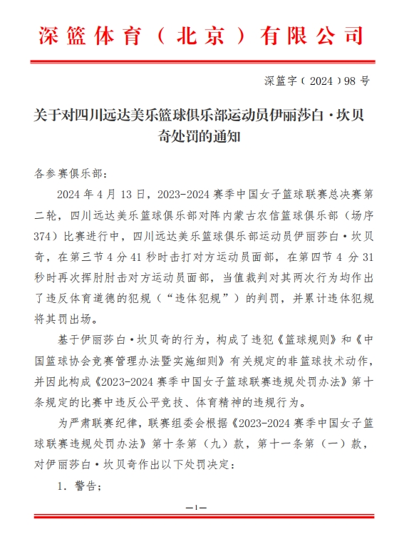04月16日讯 据博主“我们爱女篮”报道,四川女篮外援坎贝奇被禁赛1场,并罚款5千元。