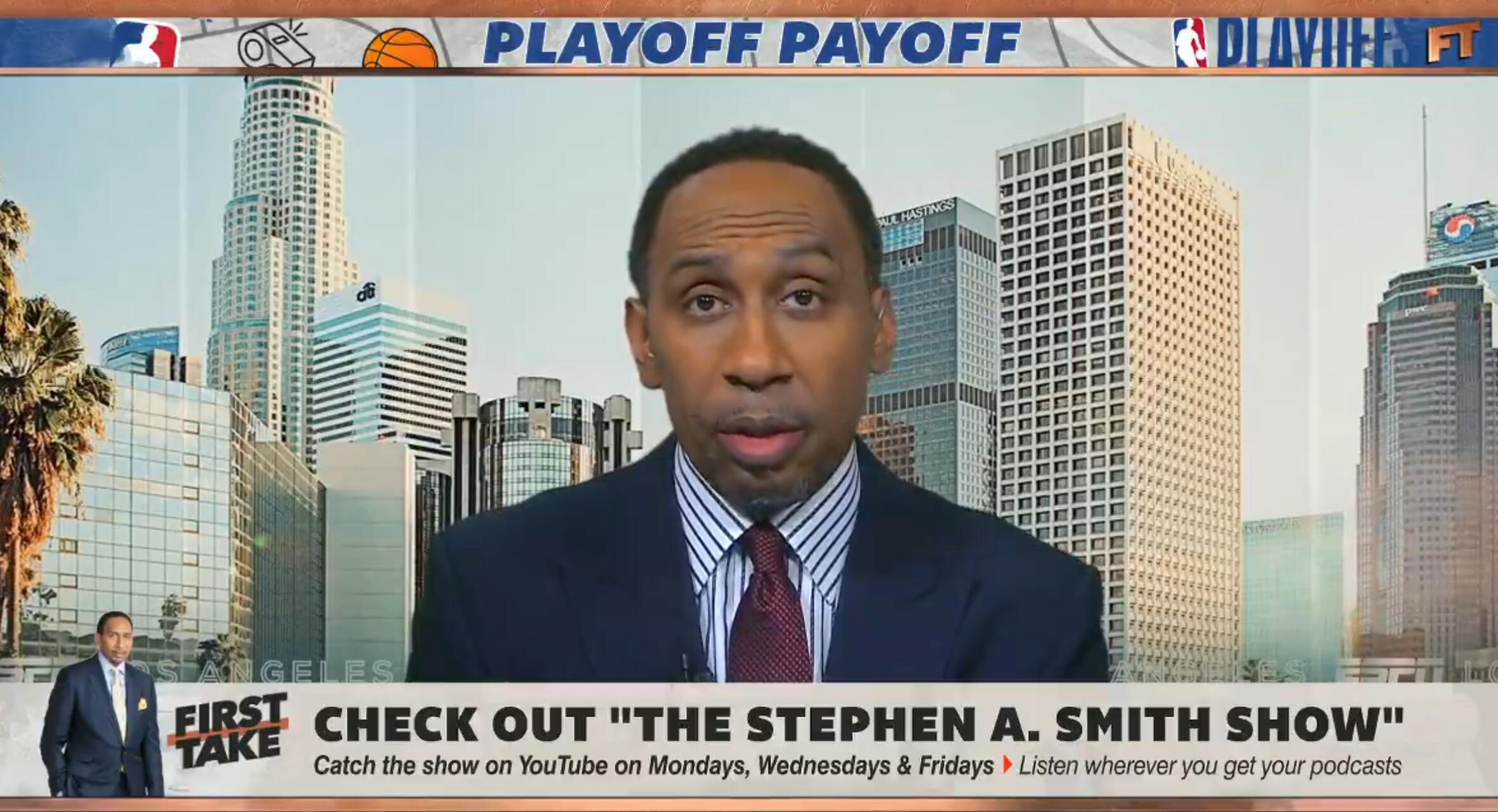 04月19日讯 名嘴Stephen A Smith今日做客节目《First take》谈到了掘金和湖人的对局,并提出了自己的观点,他认为,如果湖人能赢下掘金,湖人就能夺冠。“如果勒