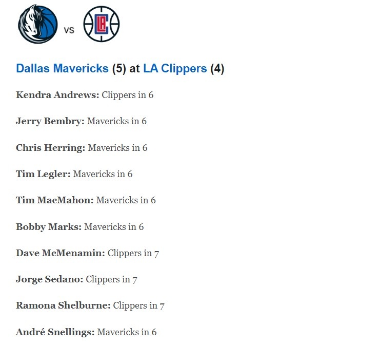 ESPN专家团预测独行侠VS快船:10人中6人预测独行侠以下克上!