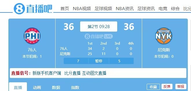 首节恩比德打满12分钟,帮助76人建立9分领先,次节开局恩比德休息,但尼克斯接连外线发炮,一波11-2攻击波直接抹平分差。