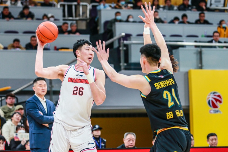 本场比赛,广东内线周琦出战30分钟,投篮17中8,三分球1中0,罚球9中5,拿到21分17篮板3盖帽的数据,正负值+10。