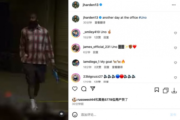 哈登INS晒今日穿搭和赛场集锦:又是上班的一天