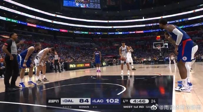 比赛末节独行侠一度多次罚球命中。截至末节末段,独行侠29罚21中、快船11罚9中。