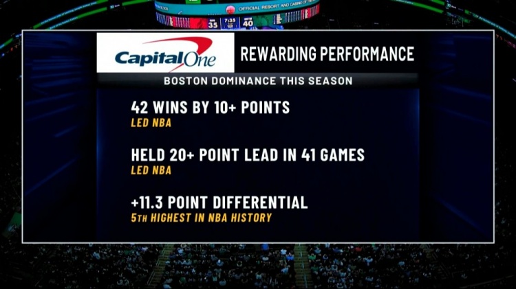 本赛季的凯尔特人:42场净胜10+,联盟第一;41场领先20+,联盟第一;场均净胜11.3分,NBA历史第五。