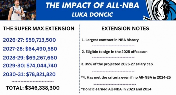 有史以来最大!东契奇有资格在明年休赛期签下5年3.46亿超级顶薪