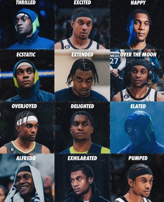 森林狼官推晒出了麦克丹尼尔斯的表情包合集,并问道:“你猜他现在是什么心情?”