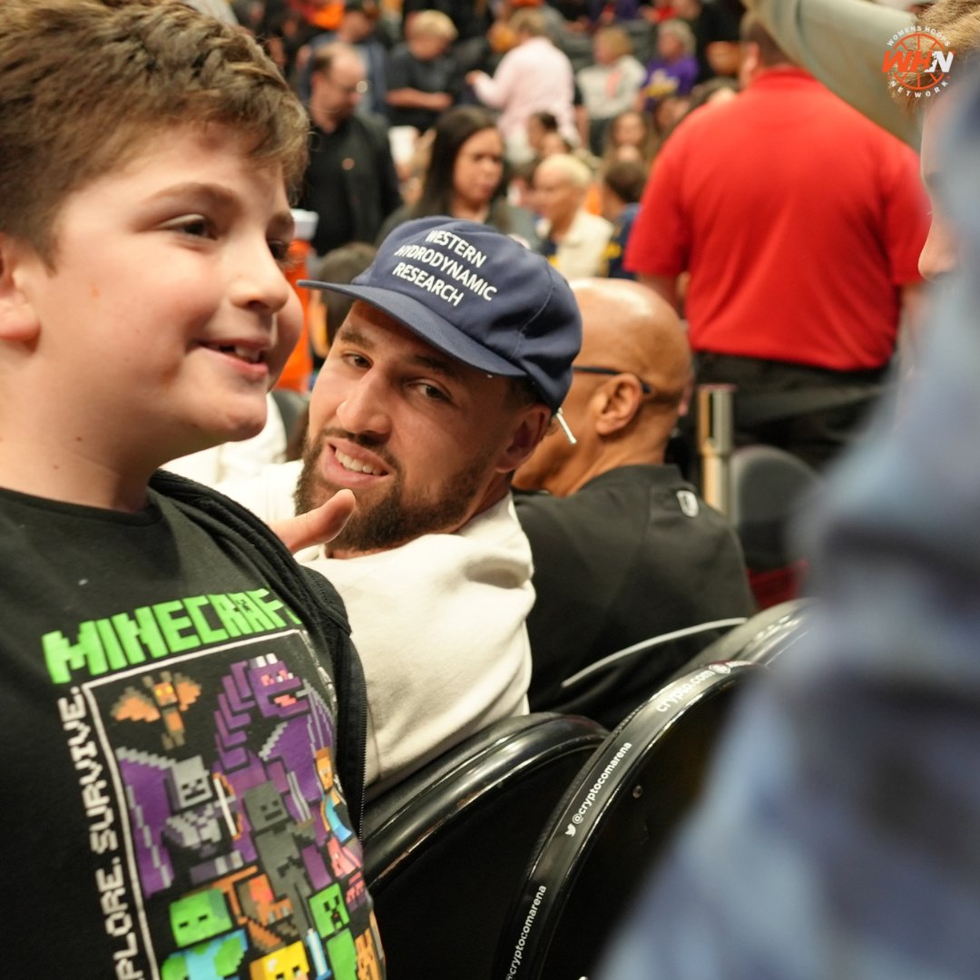 05月26日讯 昨日,克莱和自己的老爸Mychal去到洛杉矶的加密球馆看了火花vs狂热的比赛,本场比赛是WNBA的状元凯特琳-克拉克vs榜眼卡梅隆-布林克的对决。