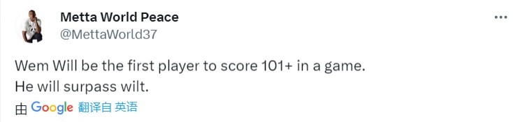 阿泰斯特写道:“文班亚马未来会是首位单场得分101+的球员,他会超越张伯伦。”